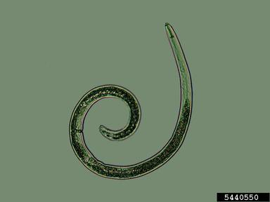 - Les nématodes entomopathogènes qui parasitent et tuent les larves d'insectes nuisibles (vers blancs, vers gris, moucherons de terreau, chenilles de Lépidoptères) et dont certains servent comme auxiliaires et biopesticides en lutte biologique. Par exemple, Heterorhabditis bacteriophora, parasite de l'othiorrhynque et de la larve du hanneton.