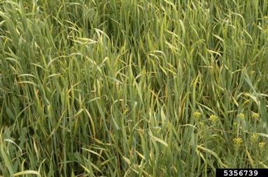 | Jaunisse nanisante de l’orge | Barley yellow dwarf virus (BYDV) | Céréales (blé, orge, avoine, maïs, riz) | Jaunissements foliaires et pertes importantes; transmis par les pucerons; maladie virale la plus répandue chez les céréales dans le monde |