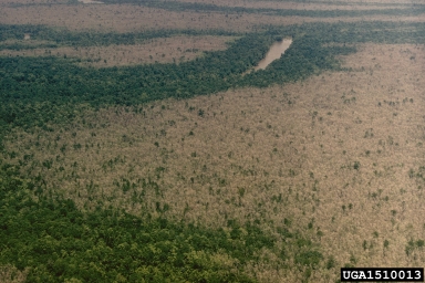 | Défoliation forestière due aux chenilles de la livrée des forêts (Malacosoma disstria, Lepidoptera) aux États-Unis Crédit: USDA Forest Service - Region 8 - Southern , USDA Forest Service, Bugwood.org |