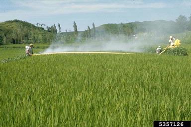 | Application de pesticide dans une rizière en Corée du Sud Crédit: William M. Brown Jr., Bugwood.org |